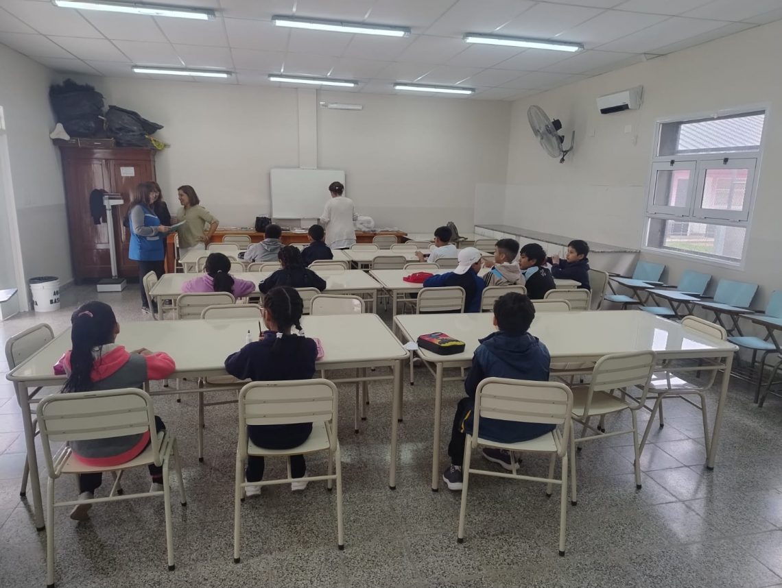 “Se decidió realizar el operativo en otro sector que no sea aula de todos los días, sino un espacio diferente más distendido y vemos gran participación y atención además están muy entusiasmados con el lápiz que le dijimos que es mágico para que puedan pintar bien y consignar las respuestas correctas”, explicó Vinchaca.