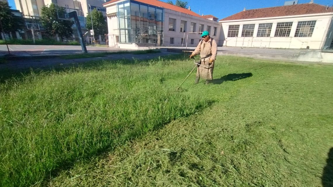 Unidades operativas del Ministerio de Educación trabajan en el desmalezamiento de edificios escolares ante la proximidad del inicio de un nuevo Ciclo Lectivo.