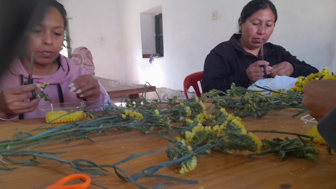 Las Ermitas se llenaron de vida y color con la utilización de productos naturales: flores secas, alfalfa, semillas de churqui, maíz, quinua y tierra, en una técnica que conecta arte, territorio y tradición.