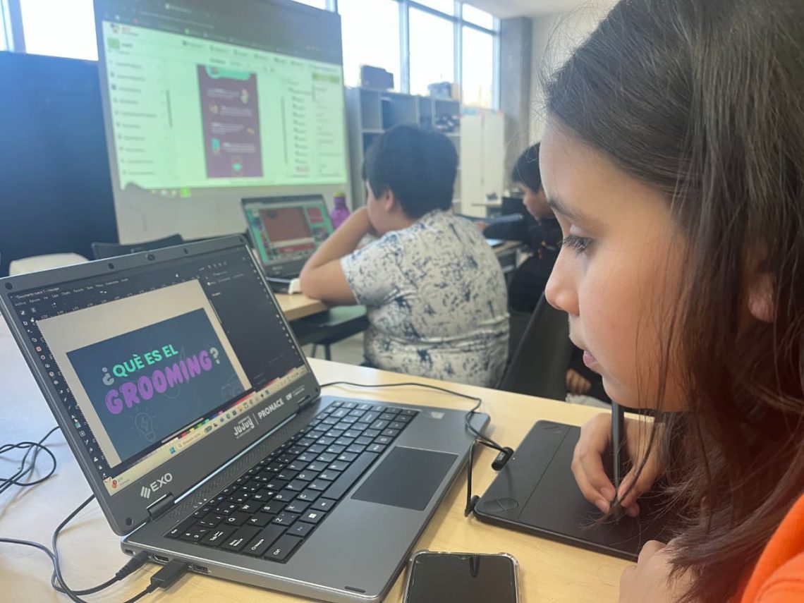 La iniciativa consiste en la creación de una app educativa desarrollada por niños y niñas de entre 9 a 12 años, que aborda tres ejes temáticos claves para concientizar sobre la navegación crítica, responsable y consciente en internet, abordando tips de ciberseguridad; aprendiendo sobre el concepto de huella digital y profundizando en la prevención del grooming.