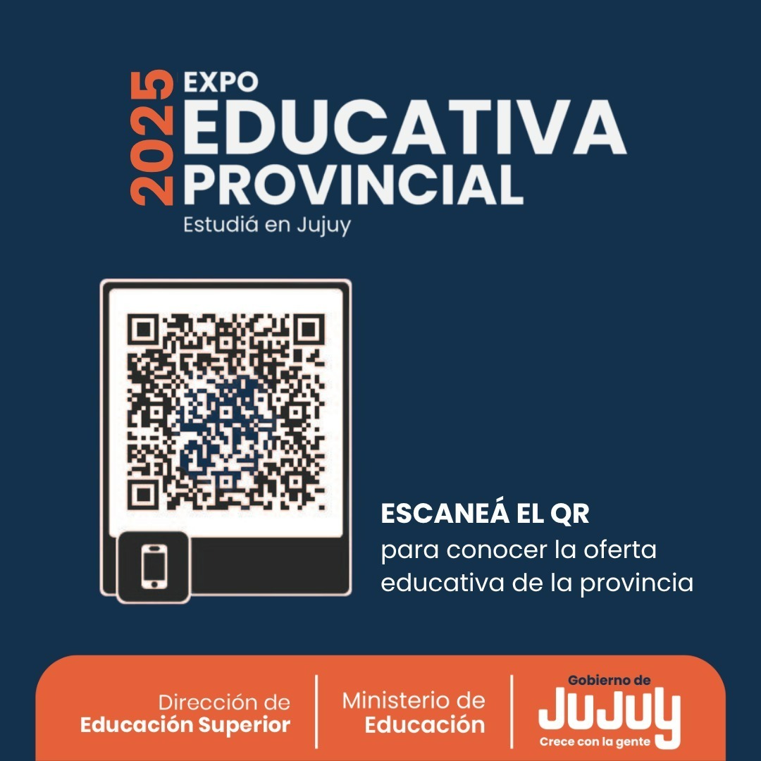 El Gobierno de la Provincia y el Ministerio de Educación de Jujuy, a través de la Dirección de Educación Superior, invita a toda la comunidad a participar de la Expo Educativa Provincial 2025 – Estudiá en Jujuy, un evento que reunirá en un mismo espacio a instituciones educativas de toda la provincia, ofreciendo información completa sobre la amplia oferta académica disponible para el próximo ciclo lectivo.