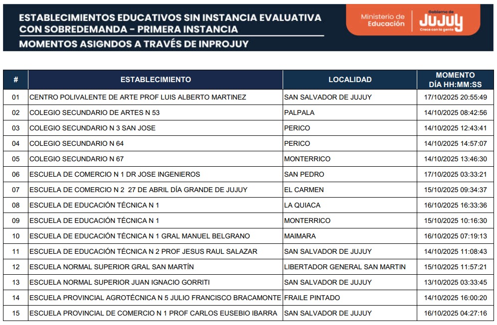 El Ministerio de Educación realizó la primera asignación de un “momento” para cada institución educativa con sobredemanda de preinscriptos para el ingreso a primer año de nivel secundario del ciclo lectivo 2026.