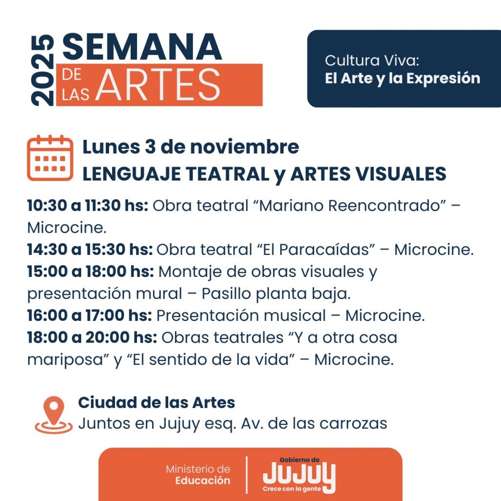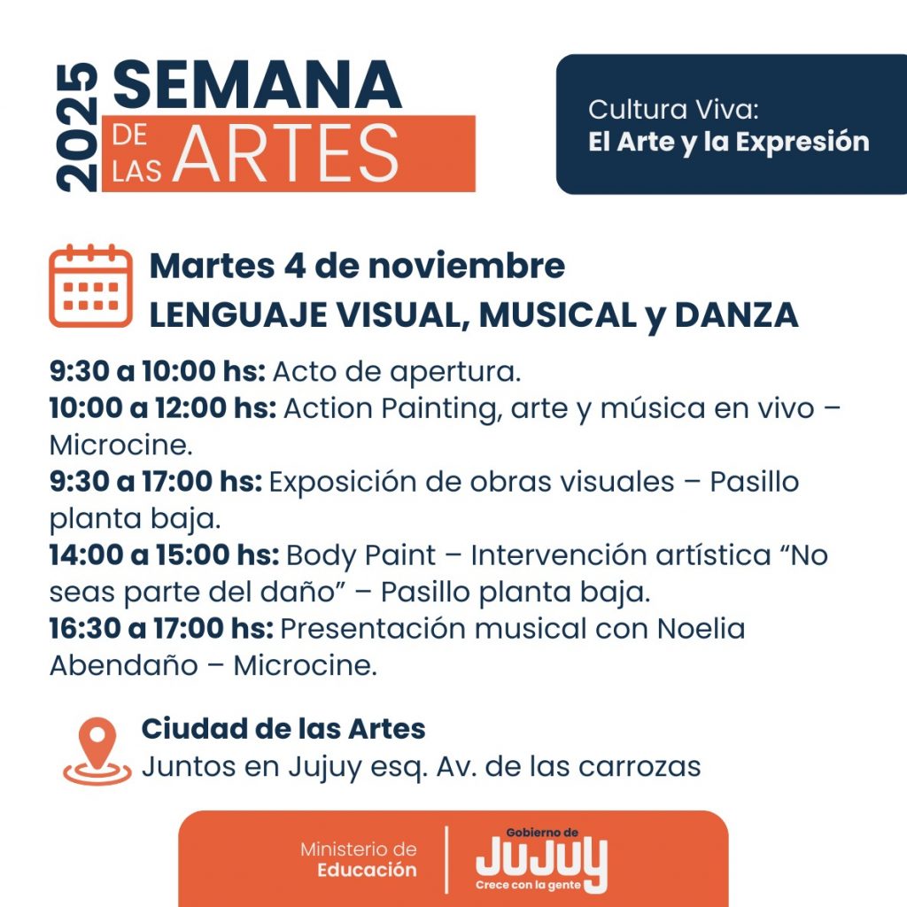 El Ministerio de Educación a través de la Modalidad de Educación Artística invita a toda la comunidad educativa a participar de una nueva edición de la Semana de las Artes 2025, a llevarse a cabo en la Ciudad Cultural.